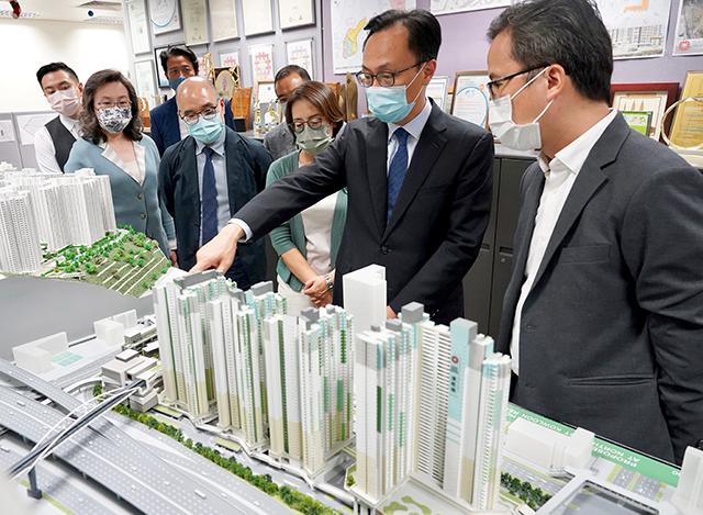 公務員事務局局長聶德權9月29日到訪房委會總部,與房屋署署長王天予和部門首長級人員會面。隨後參觀屋邨管理處轄下的土力工程管理小組,聽取同事介紹本年初新推出的斜坡保養管理系統,了解他們如何善用科技利便工作,提升工作效率。局長接着參觀發展及建築處的建築設計組(三),了解有關規劃、設計和建造公營房屋方面的工作,同事向他簡介深水埗海達邨和觀塘安泰邨等最新的公營房屋發展項目。 |