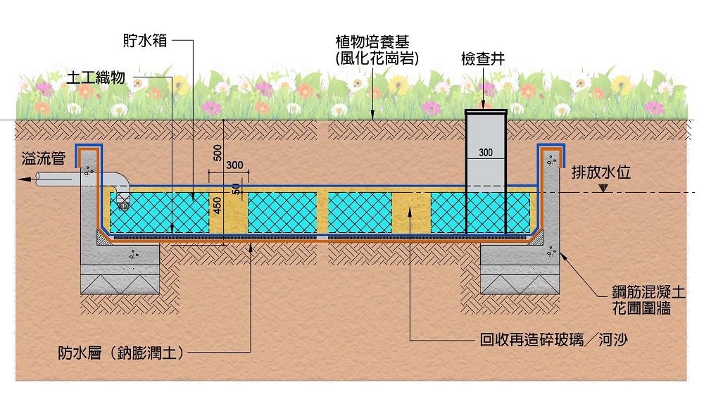 暴雨、颱風愈見頻繁,為提高公營房屋的氣候適應力和可持續性,房屋署開發「零灌溉系統」;在園圃下設置儲水箱,收集和儲存雨水,讓植物根部自行吸收水分,無須另行灌溉。系統減少用水之餘,更減輕水分流入城市排水系統的壓力。